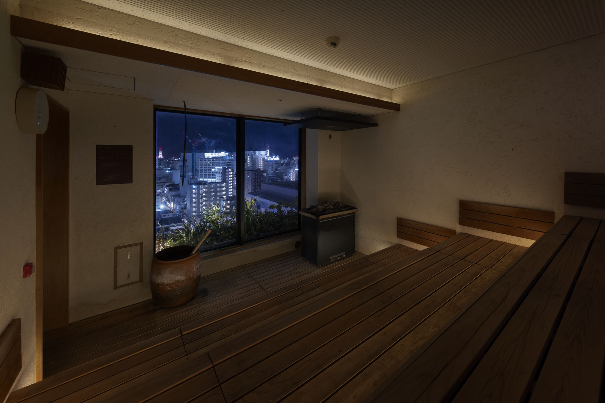 Penthouse Suite on the Top Floor. Located on the 12th floor, the penthouse suite offers a panoramic view of the cityscape of Naha. Combining the room and the terrace, you have a private space of up to 150 square meters. It is also the only room with direct access to the swimming pool and sauna area. The suite features a kitchen, a living and dining area, and two bedrooms. There is the lush, open-air terrace and special plans are available, including in-room dining using the spacious dining table. Enjoy a stay enriched by exclusive services that make your experience more free and fulfilling.