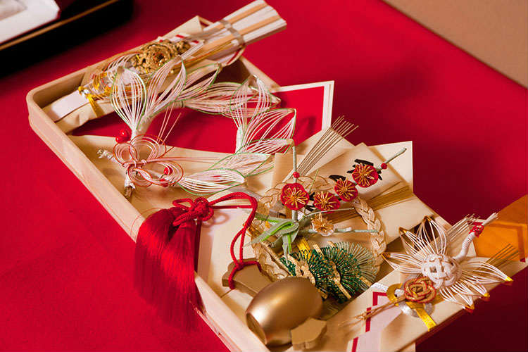 結納は正式な婚約の儀式で、結納品を交わす伝統的なもの。